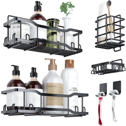 4 jeux de capacité de 40LB sans perçage-Organisateur de douche en acier inoxydable antirouille pour la décoration de la salle de bain Caddy de douche Étagères de salle de bain