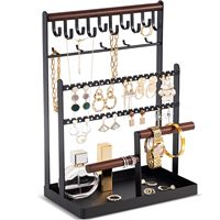 ที่วางสร้อยคอเครื่องประดับ6ชั้นพร้อมตะขอ15อันชั้นเก็บเครื่องประดับต้นไม้